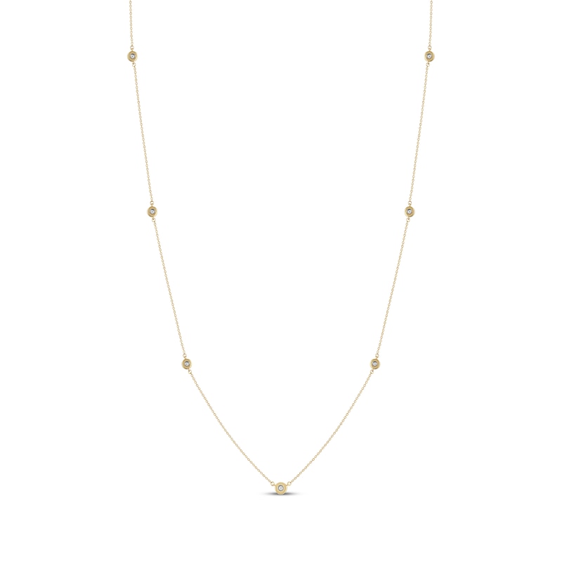 Diamond Halo Station Necklace 3/8 ct tw Yellow Gold Plated 24"