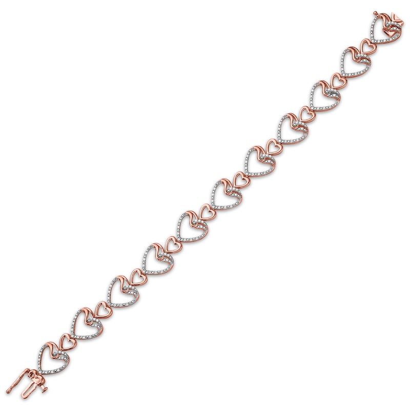 Diamond Stacked Hearts Link Bracelet 1/2 ct tw Rose Gold Plated 7"