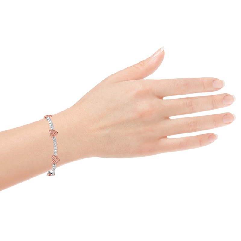 Diamond Heart Bracelet 1/2 ct tw Round-cut Rose Gold Plated 7.25"