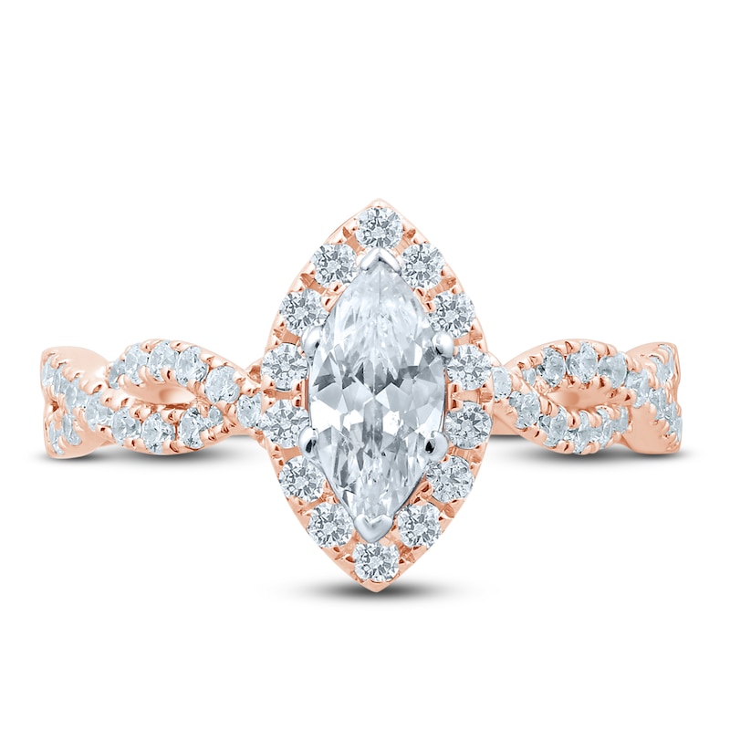 Diamond Engagement Ring 1-1/6 ct tw Marquise & Round Rose Gold Plated