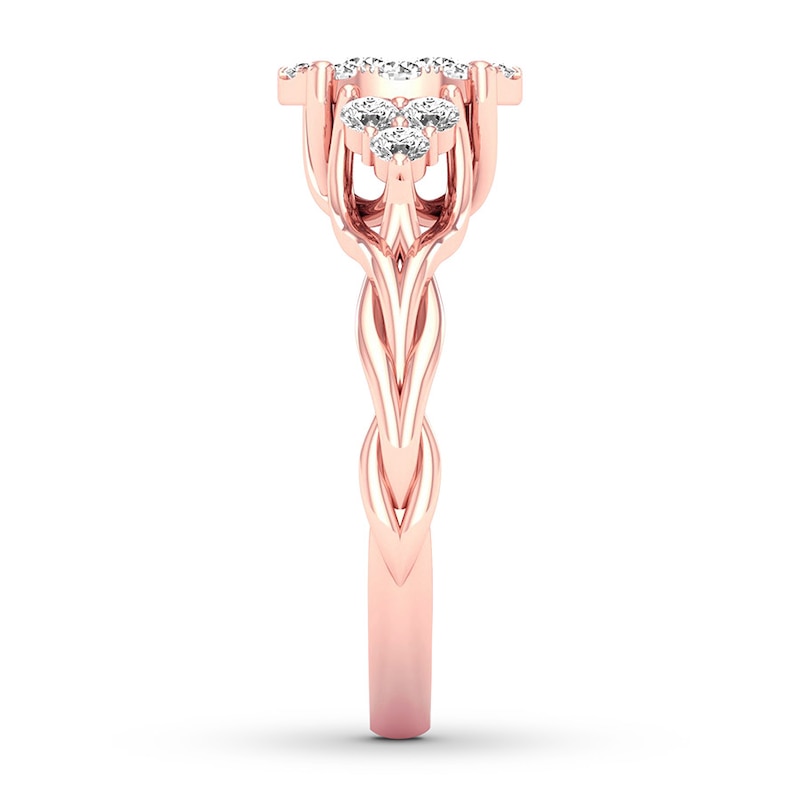 Diamond Engagement Ring 3/4 ct tw Marquise/Round Rose Gold Plated