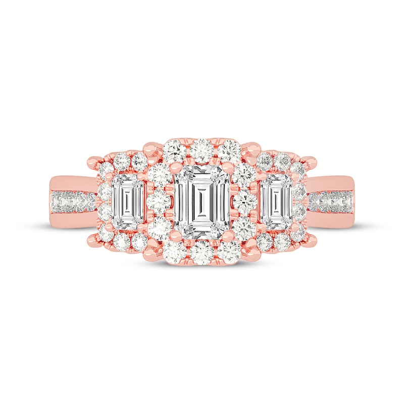 Emerald-Cut Diamond Three-Stone Engagement Ring 1-5/8 ct tw Rose Gold Plated