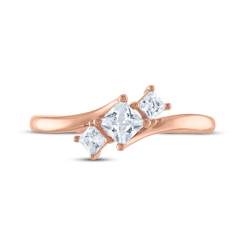 Princess-Cut Diamond Three-Stone Engagement Ring 1/2 ct tw Rose Gold Plated