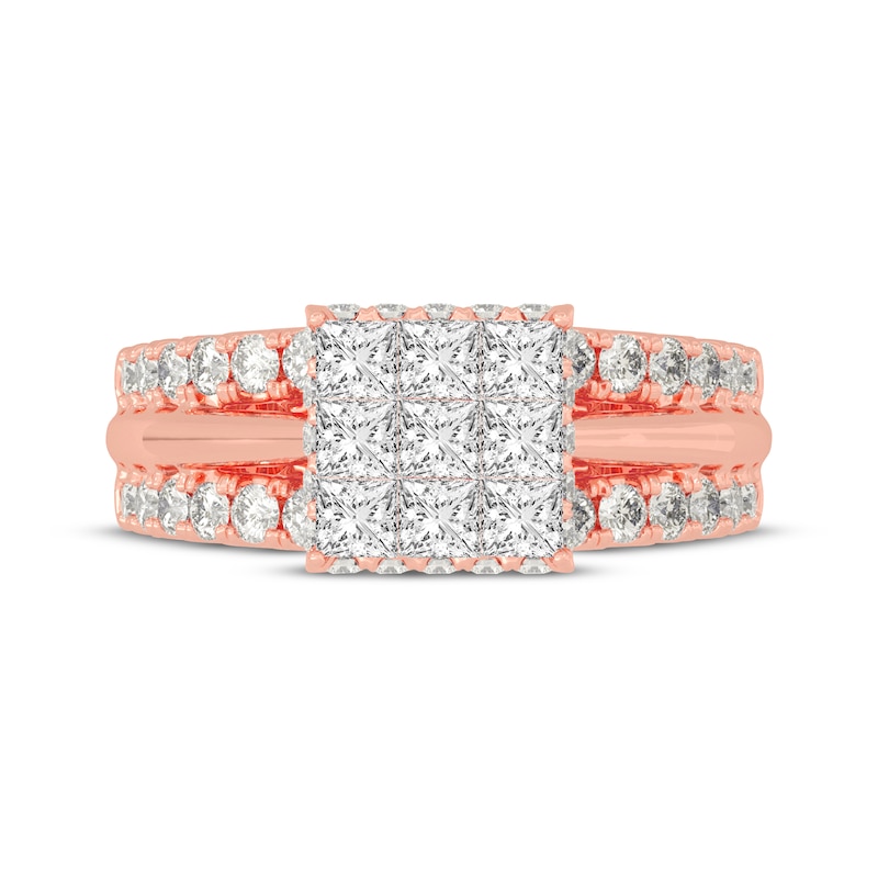 Multi-Diamond Engagement Ring 2 ct tw Round-cut Rose Gold Plated