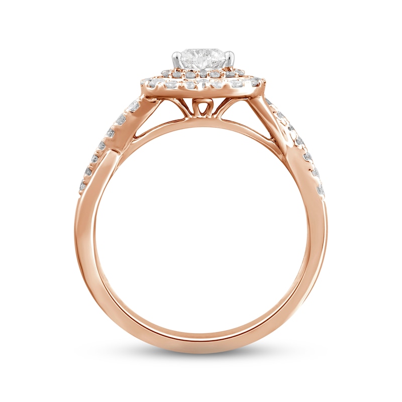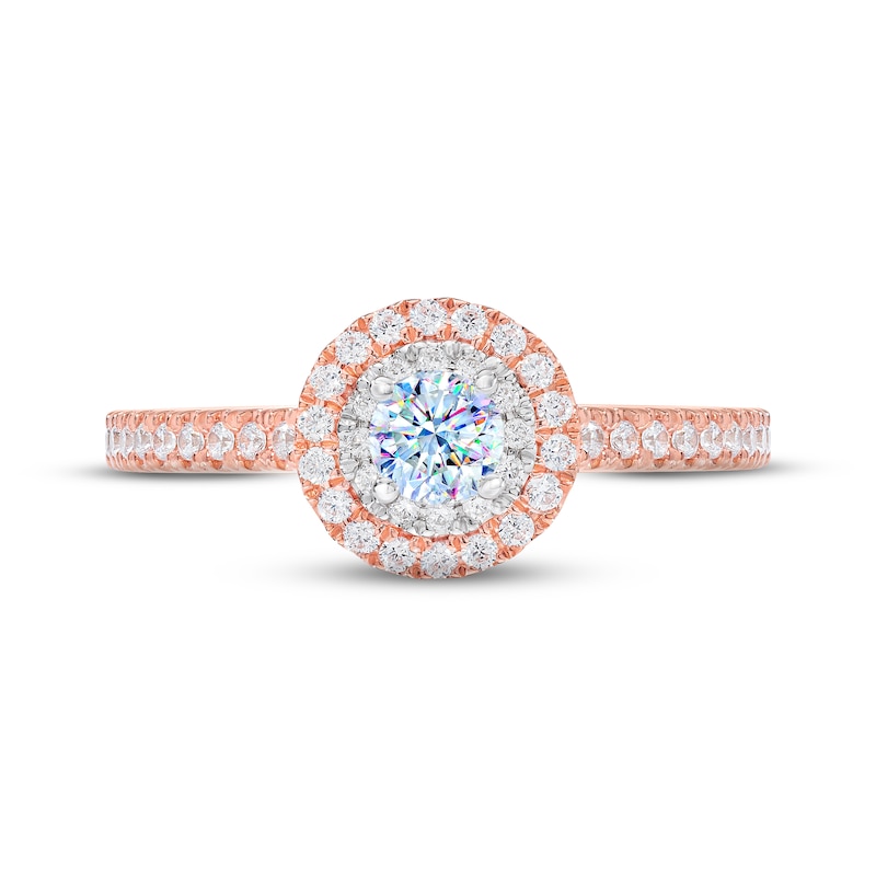 Diamond Halo Engagement Ring 5/8 ct tw Heart & Round-cut Rose Gold Plated