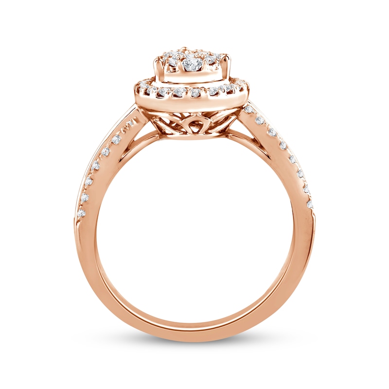 Diamond Engagement Ring 7/8 ct tw Oval & Round Rose Gold Plated