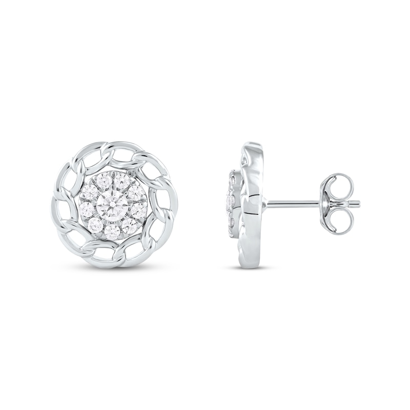 Round-Cut Diamond Chain Edge Stud Earrings 1/2 ct tw Silver Plated
