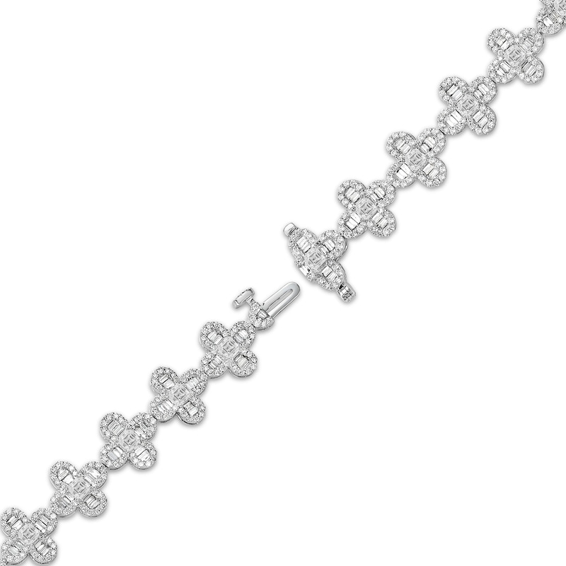 Asscher-Cut Diamond Clover Link Tennis Bracelet 6-3/4 ct tw White Gold Plated 7"