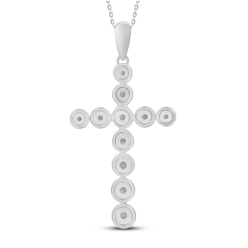 Diamond Cross Necklace 3/8 ct tw Round & Baguette White Gold Plated 18"