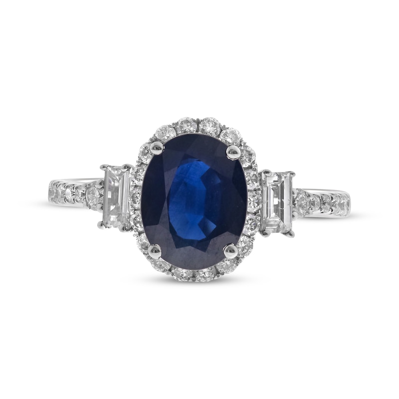 Oval-Cut Blue Sapphire & Diamond Ring 3/4 ct tw White Gold Plated