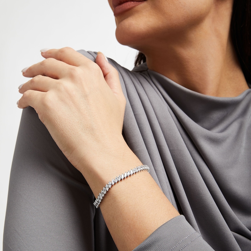 Diamond Line Bracelet 7 ct tw Marquise-cut White Gold Plated 7.25"