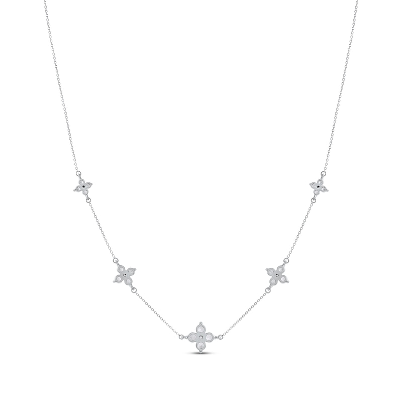 Diamond Quatrefoil Station Necklace 1-1/2 ct tw White Gold Plated 18"