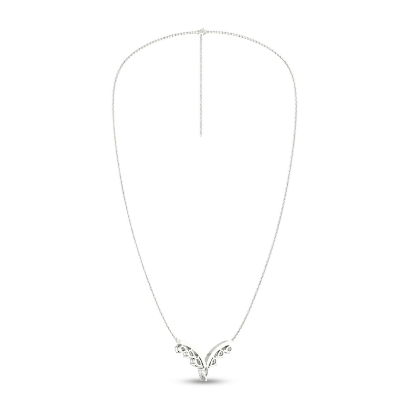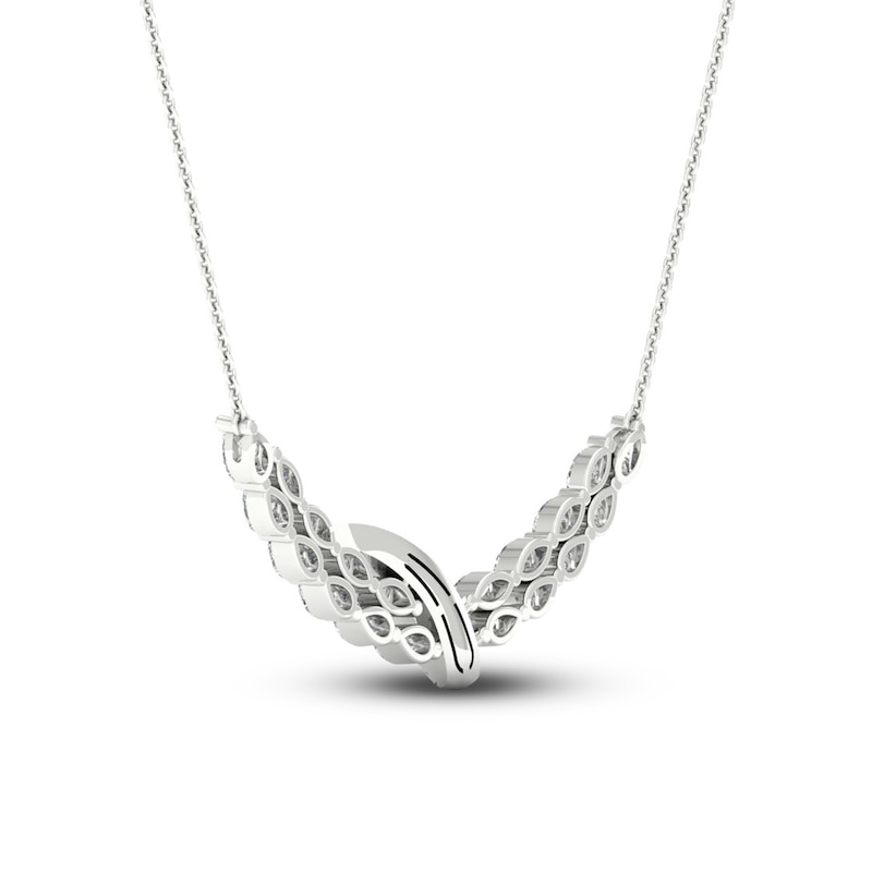 Diamond V Necklace 1-1/2 ct tw Pear & Round-cut White Gold Plated 18"