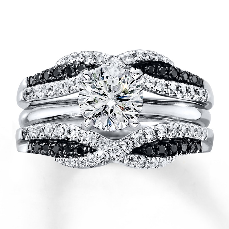 Black & White Diamonds 1/2 ct tw Enhancer Ring White Gold Plated