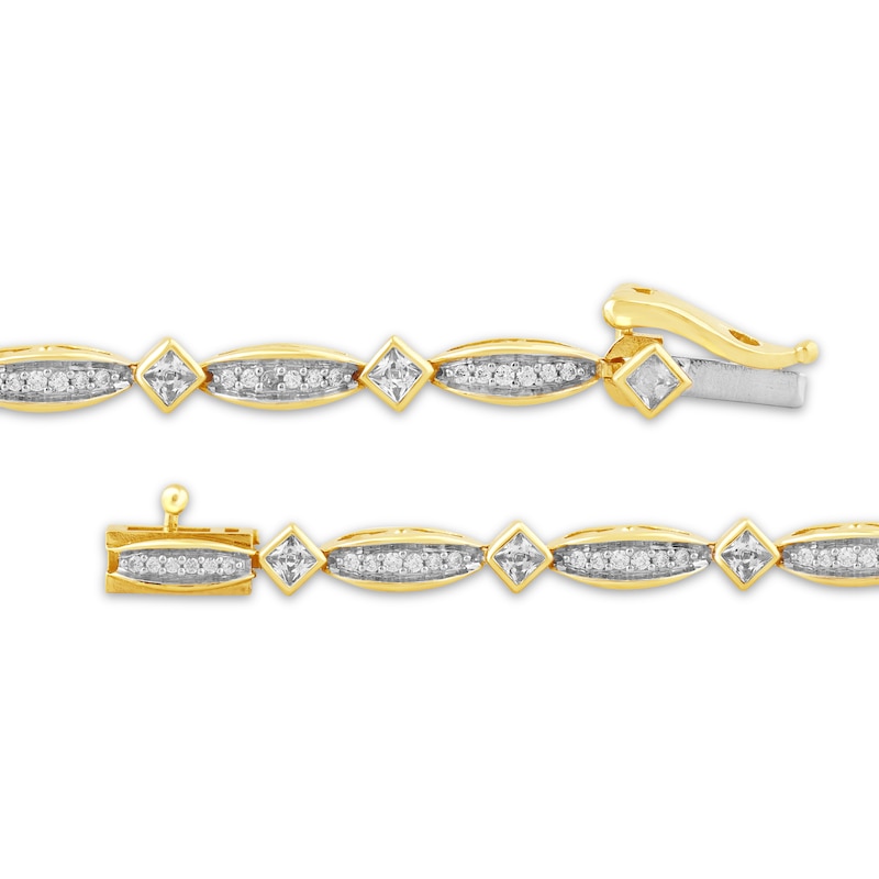 Princess & Round-Cut Diamond Bezel Bracelet 1 ct tw Yellow Gold Plated
