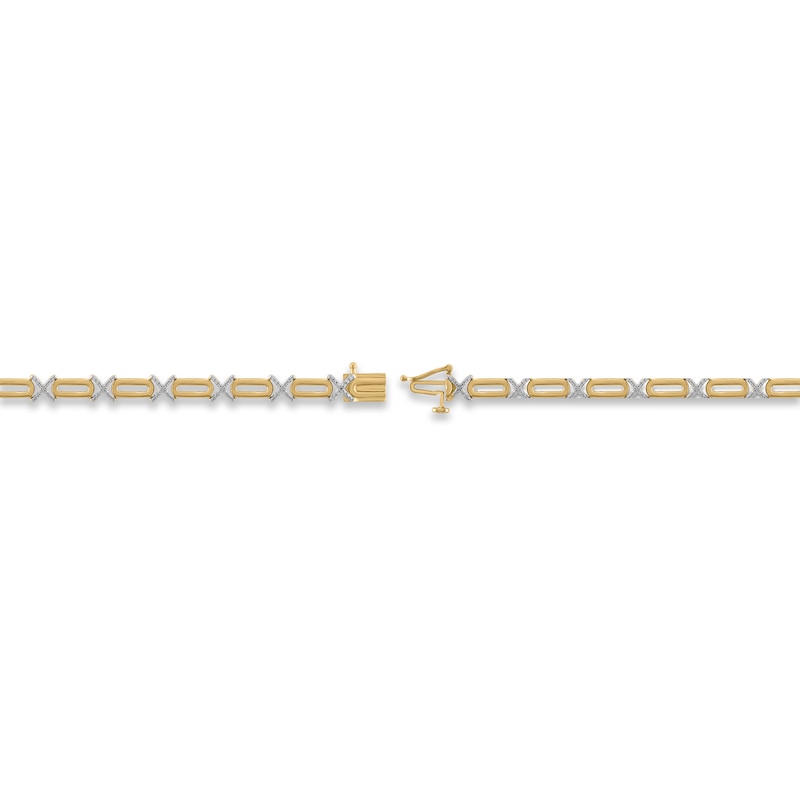 Diamond XO Paperclip Bracelet 1/6 ct tw Round-cut Yellow Gold Plated 7.25"