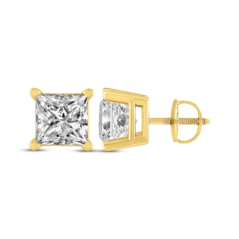 Princess-Cut Diamond Solitaire Stud Earrings 1-1/2 ct tw Yellow Gold Plated