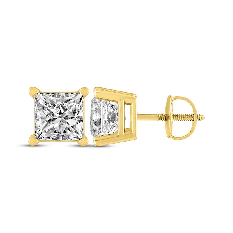 Princess-Cut Diamond Solitaire Stud Earrings 1 ct tw Yellow Gold Plated