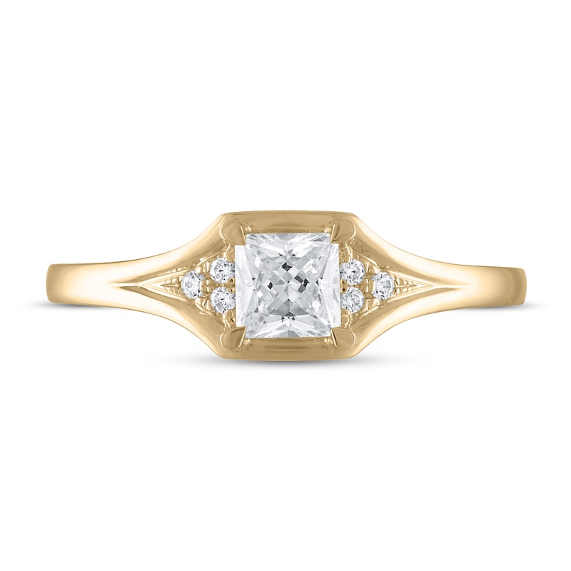 Diamond Engagement Ring 1/2 ct tw Princess & Round Yellow Gold Plated