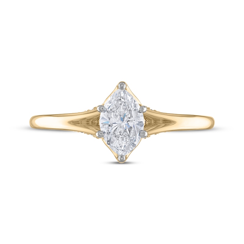 Marquise-Cut Diamond Solitaire Engagement Ring 5/8 ct tw Yellow Gold Plated