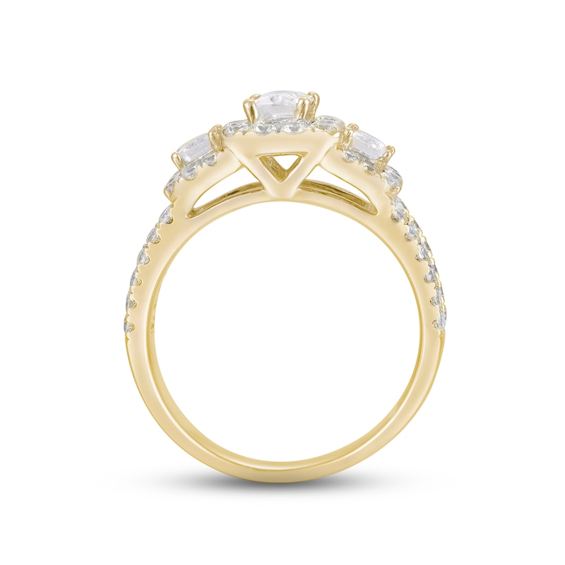 Multi-Diamond Engagement Ring 3 ct tw Round & Baguette-cut Yellow Gold Plated