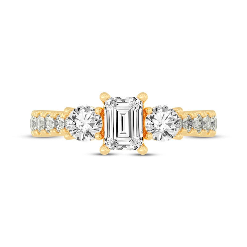 Emerald & Round-Cut Three-Stone Diamond Engagement Ring 2 ct tw Yellow Gold Plated