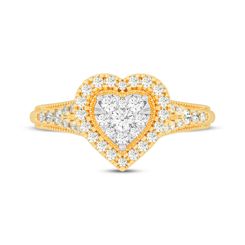 Round-Cut Diamond Heart-Shaped Engagement Ring 1/2 ct tw Yellow Gold Plated