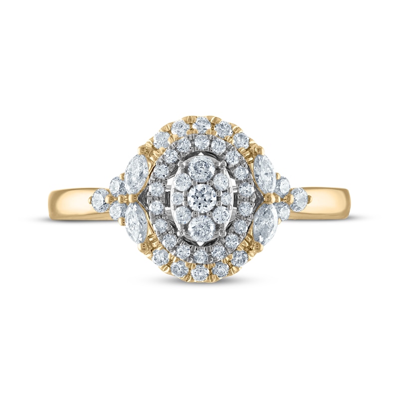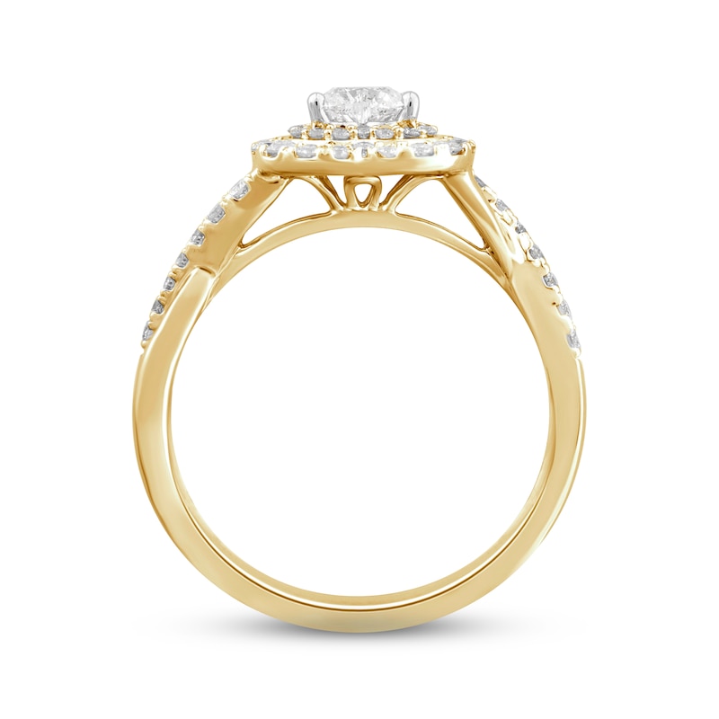 Diamond Halo Engagement Ring 5/8 ct tw Heart & Round-cut Yellow Gold Plated