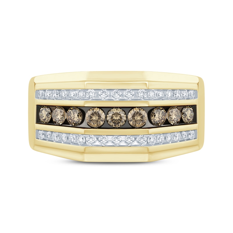 Men’s Brown & White Diamond Wedding Band 1 ct tw Yellow Gold Plated